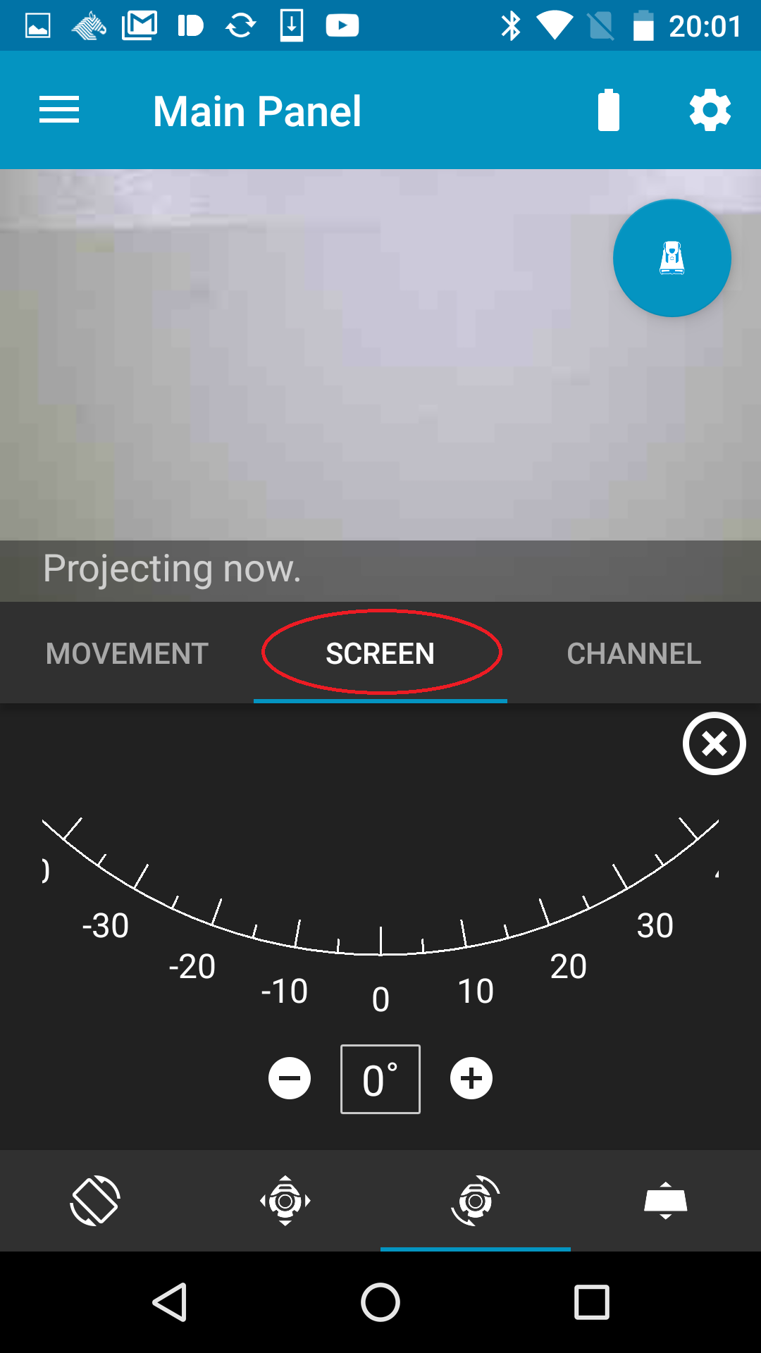 - On the top of the screen, a live camera stream is displayed. Use the UI at the bottom of the screen while viewing the video to move Tipron.